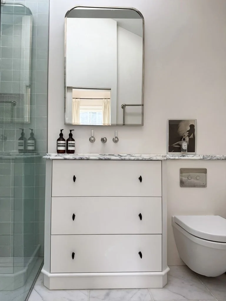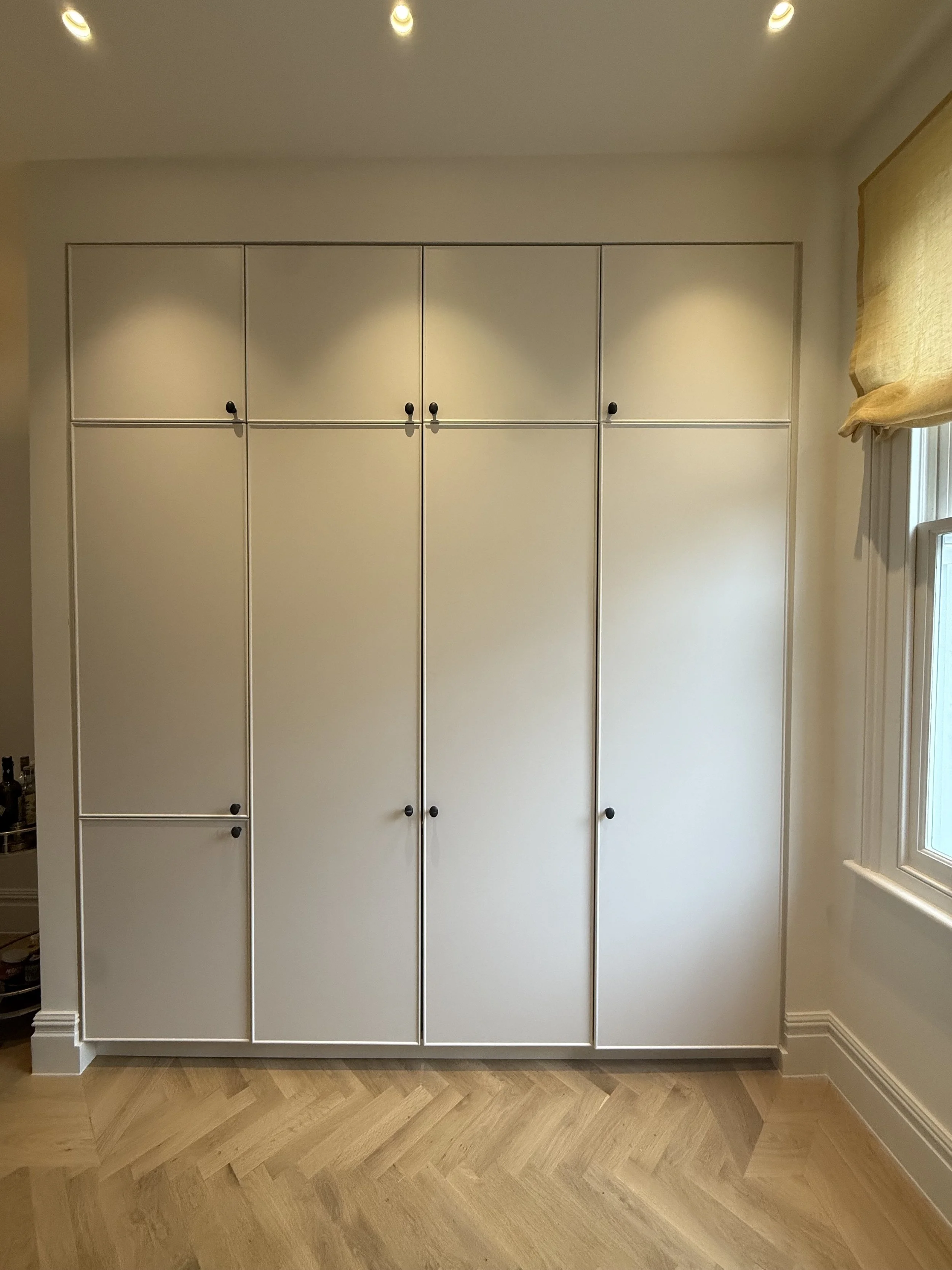 The bespoke joinery features a slim frame detail, inspired by traditional Shaker doors. We wanted to modernise the look, so we introduced a subtle half-moon trim, creating a design that feels both contemporary and elevated.